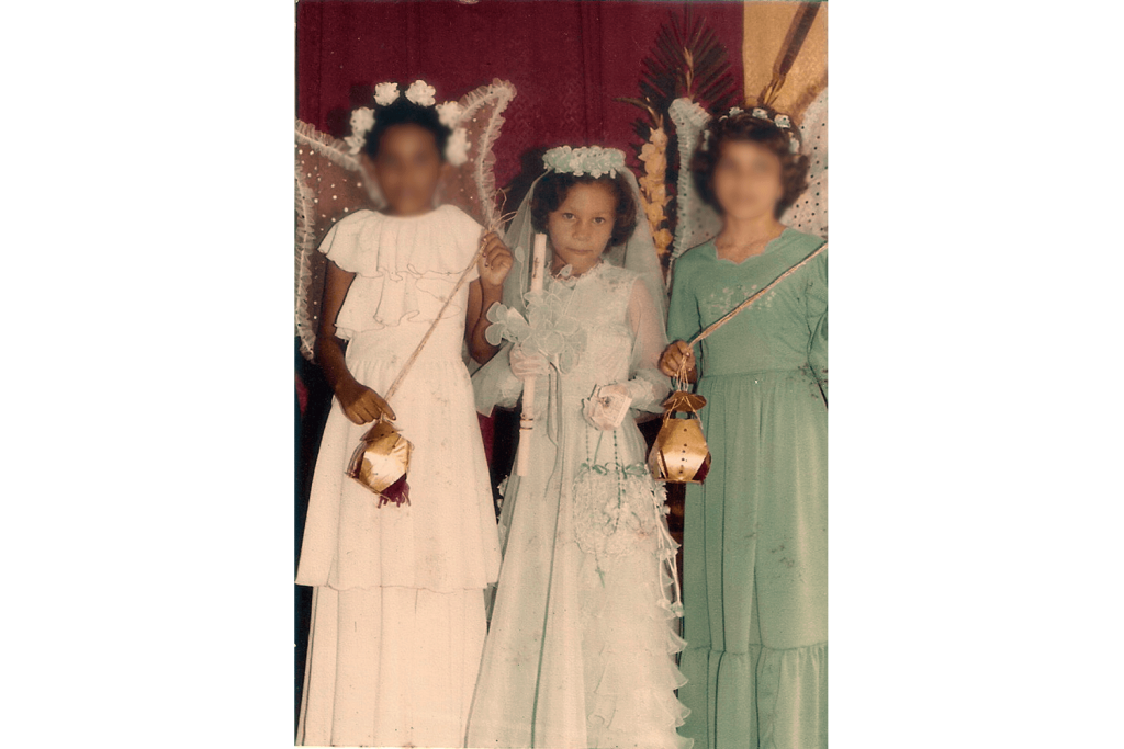Cuando tenía cerca de 9 años, nos reencontramos, cuando me preparaban, según la Iglesia Católica para tomar mi Primera Comunión, y tuve que inventar una lista de mis pecados, para que el Sacerdote en su nombre me perdonara.